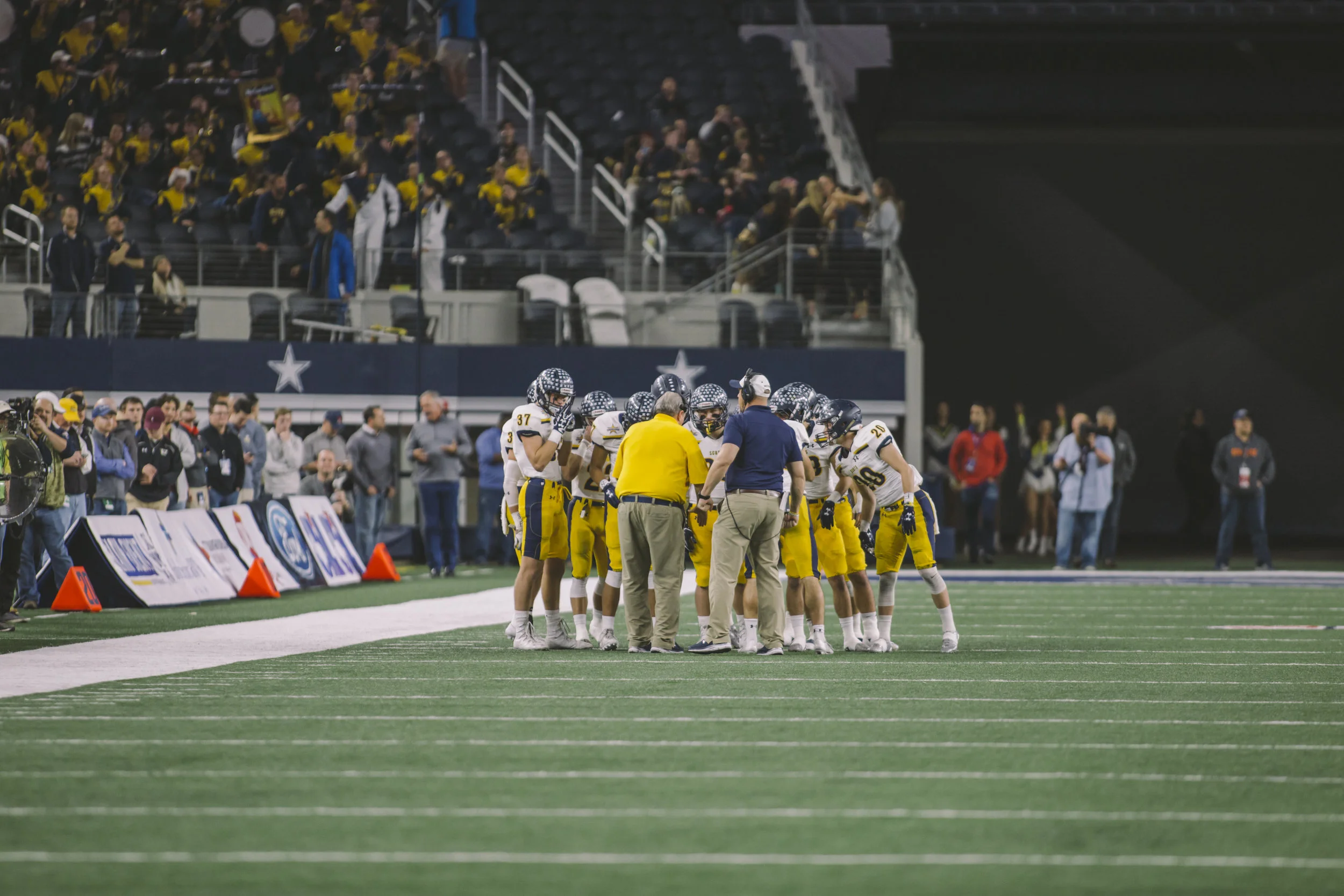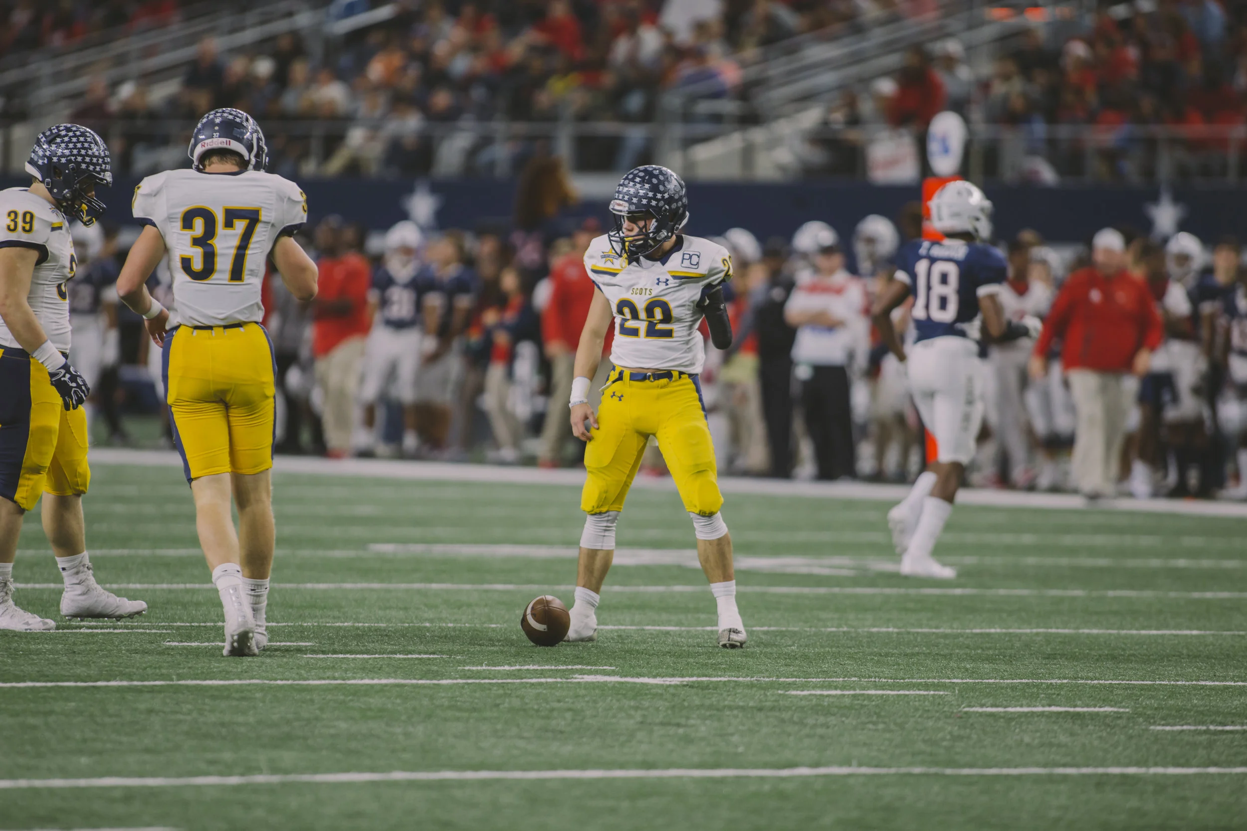After last week's nail biting win over Denton Ryan the Highland Park Scots were matched up to face the Manvel Mavericks in the Texas 5A D1 State Championship. On a rainy Friday in Dallas the HP boys boarded the busses to their last game of the season. For a lot of the senior team it would be the last time they suit up in a football uniform or ever play together on the same field. This game was destined to go down in the history books and the boys made sure of that. In case you've missed the headlines that seem to be on every sports station and news channel, after being down the whole game the HP boys were trailing 39-49 with four and a half minuets left in the fourth quarter. Showing no quit, with a little over two minuets left in the fourth quarter John Stephen Jones runs it in for a touchdown, point after was good HP 46 Manvell 49. Then Hp tries an on side kick and its caught by #88 Saustad. Corwin then brings it down on the 11 and with the clock running out John Stephen finds Cade Saustad again and takes the lead for the first time in the whole game with 34 seconds on the clock bringing the score to HP- 53 Manvel -49. Manville gets on the field and Manville Qb Kason Martin #12 throws a bomb to #5 Jalen Preston who is brought down on the 1 yard line by #30 James Herring and the clock runs out, Scots Win!